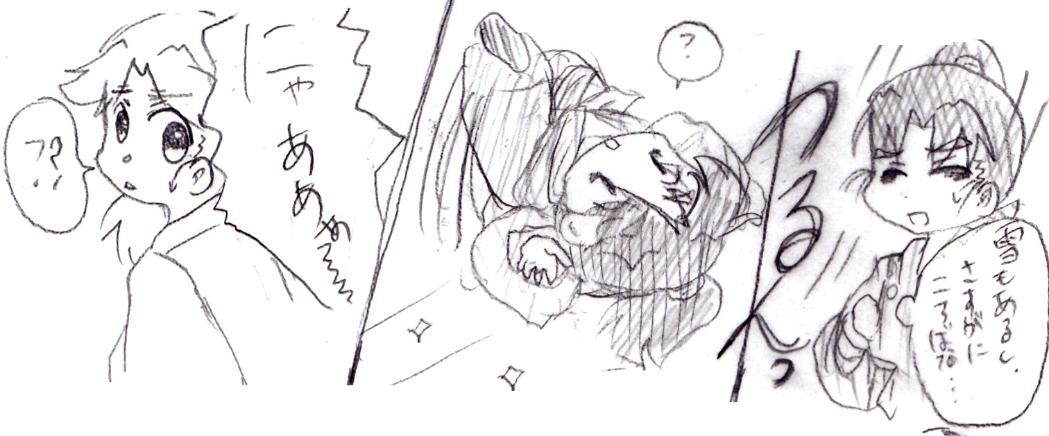 んで、追記に、18期落乱。「夜間パトロールの段」ネタの留文漫画置いときます。