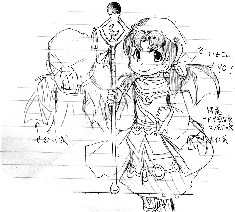 服の模様とか描いてー・・・杖を持たせたあたりで友人から一言。